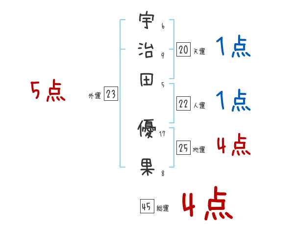 宇治田優果さんの画数の鑑定結果