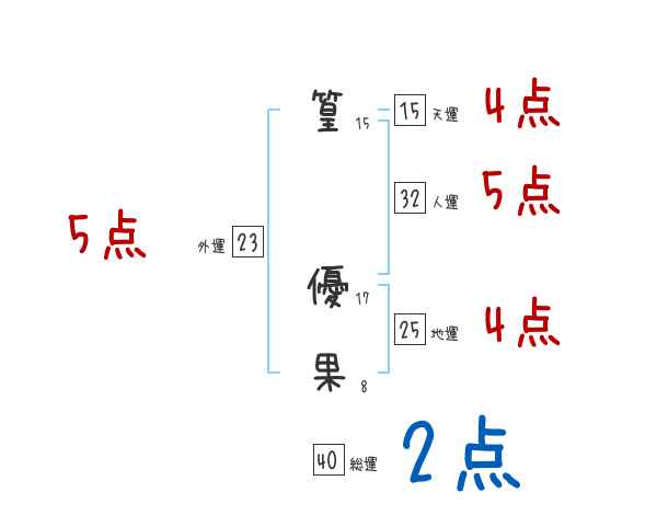 篁優果さんの画数の鑑定結果
