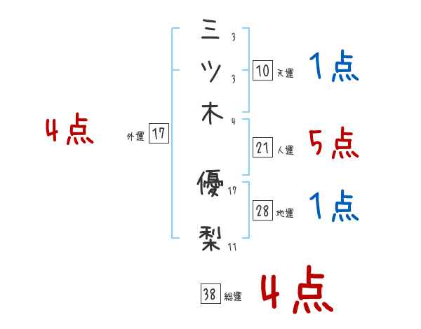 三ツ木優梨さんの画数の鑑定結果