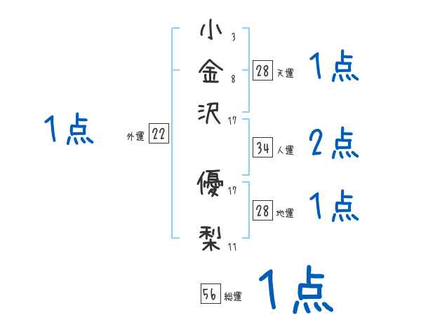 小金沢優梨さんの画数の鑑定結果