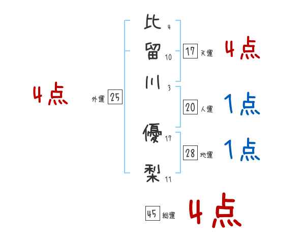 比留川優梨さんの画数の鑑定結果