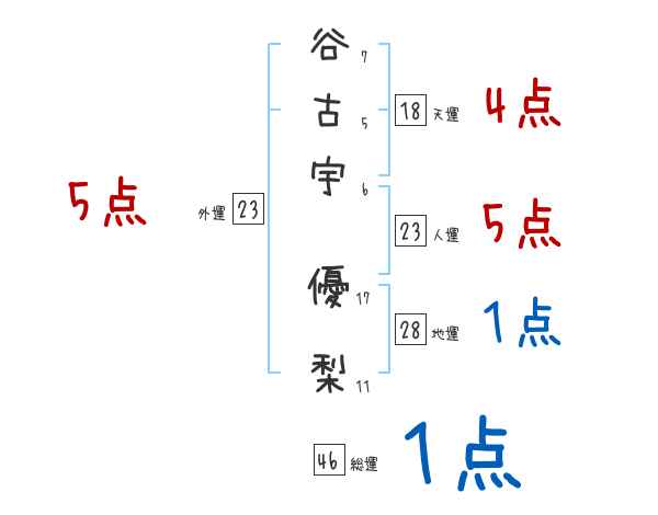 谷古宇優梨さんの画数の鑑定結果