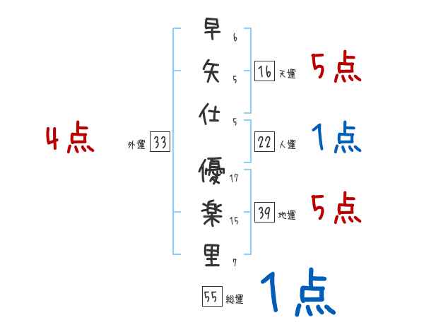早矢仕優楽里さんの画数の鑑定結果