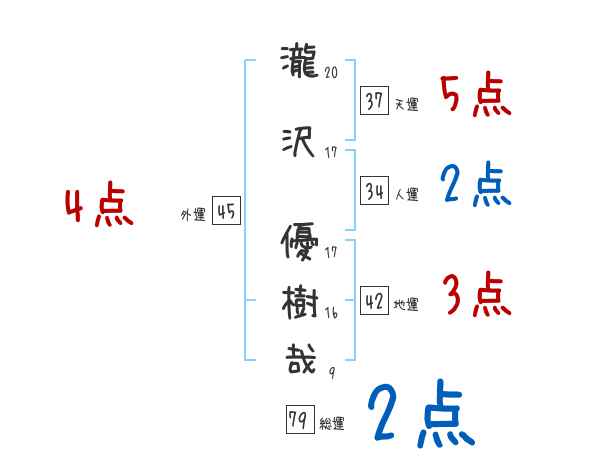 瀧沢優樹哉さんの画数の鑑定結果
