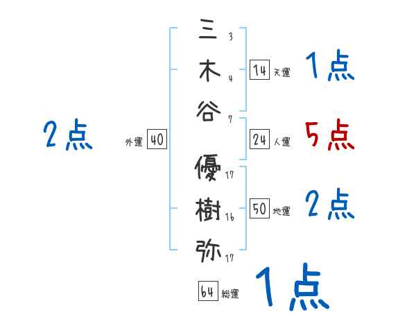 三木谷優樹弥さんの画数の鑑定結果