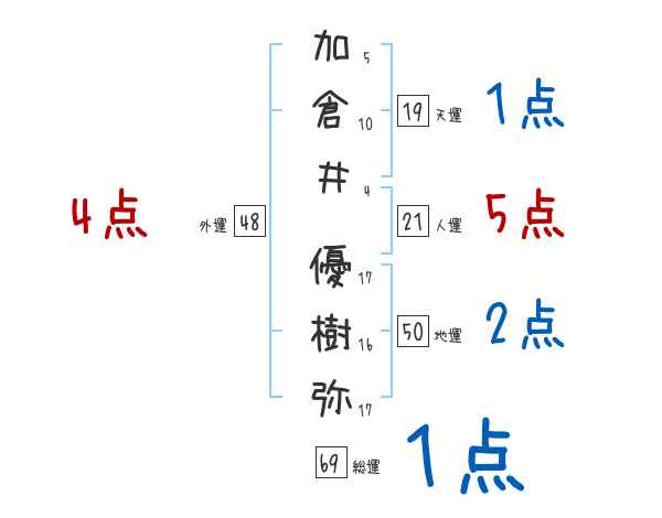 加倉井優樹弥さんの画数の鑑定結果