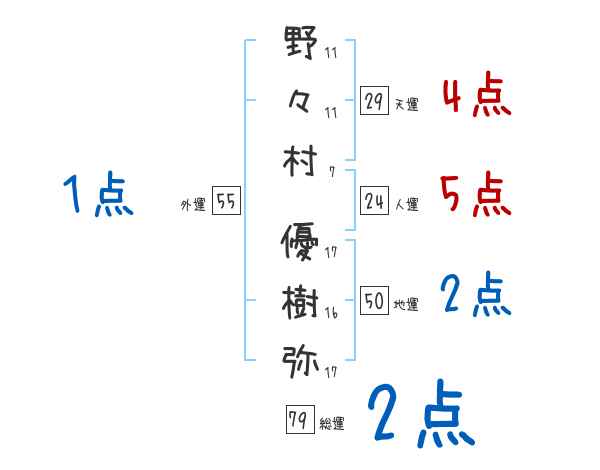 天運![]() | 野々村優樹弥さんの天運は29画の4つ星!完全主義で才能がある。厳格な心の持ち主。 家系が持つ宿命的な運勢を表します。祖先から受け継いだ苗字ですので自分の力が及びません。家柄を象徴します。 |
