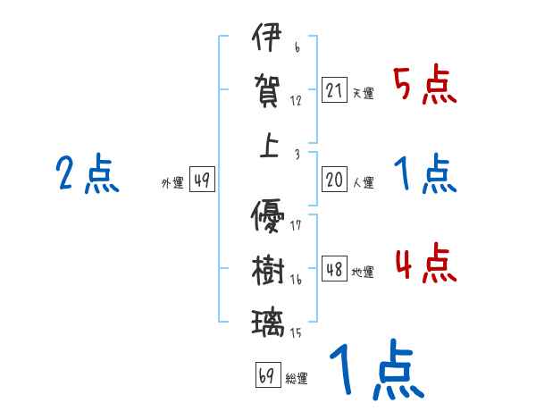 伊賀上優樹璃さんの画数の鑑定結果