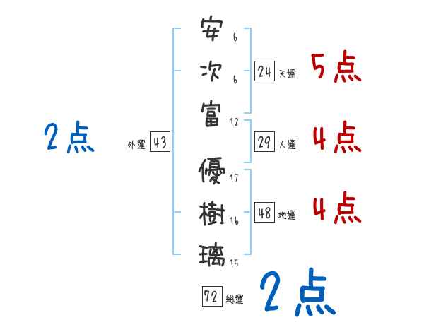 安次富優樹璃さんの画数の鑑定結果