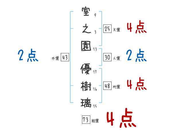 室之園優樹璃さんの画数の鑑定結果