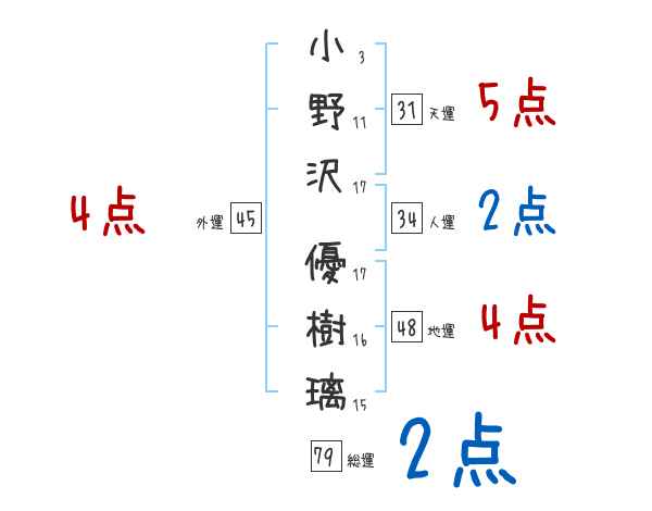 小野沢優樹璃さんの画数の鑑定結果