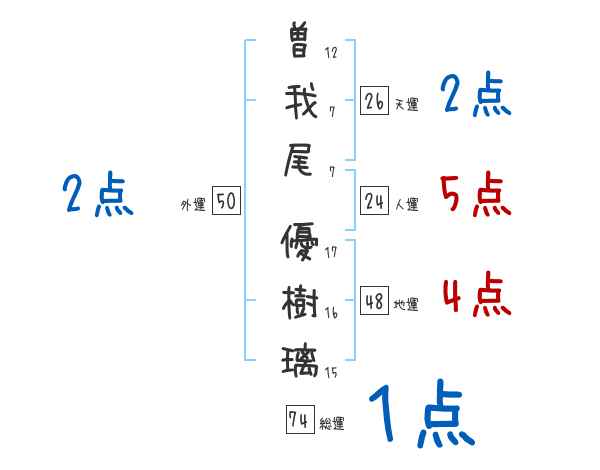 曽我尾優樹璃さんの画数の鑑定結果