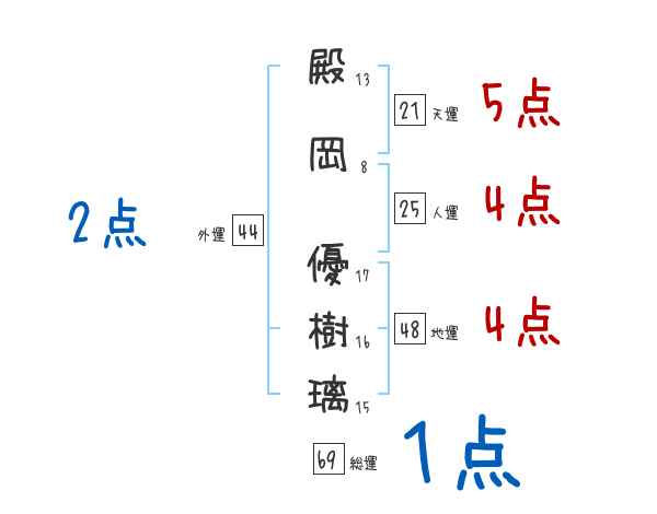 殿岡優樹璃さんの画数の鑑定結果