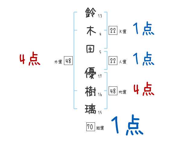 鈴木田優樹璃さんの画数の鑑定結果