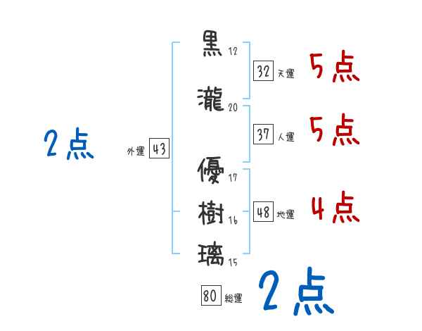 黒瀧優樹璃さんの画数の鑑定結果