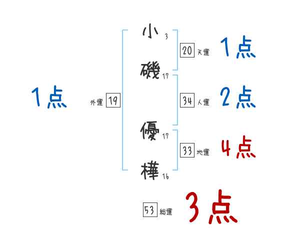 小磯優樺さんの画数の鑑定結果