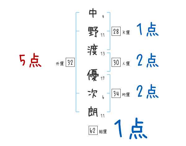 中野渡優次朗さんの画数の鑑定結果