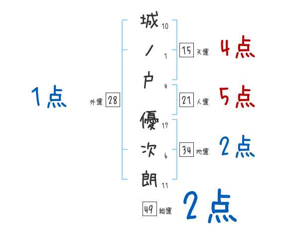 城ノ戸優次朗さんの画数の鑑定結果