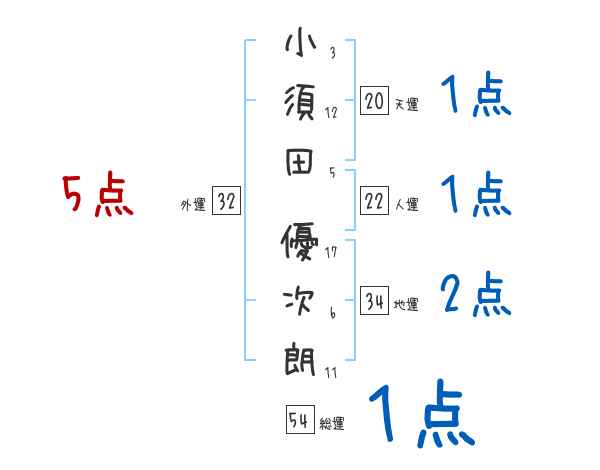 小須田優次朗さんの画数の鑑定結果