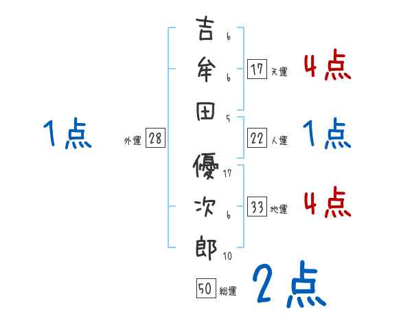 吉牟田優次郎さんの画数の鑑定結果