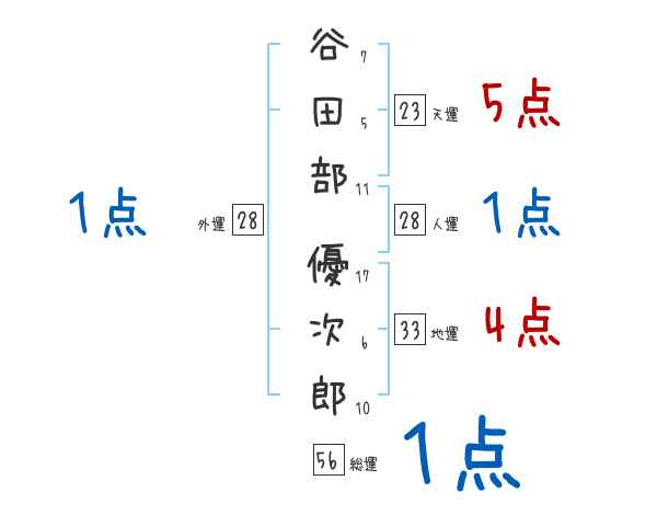 谷田部優次郎さんの画数の鑑定結果