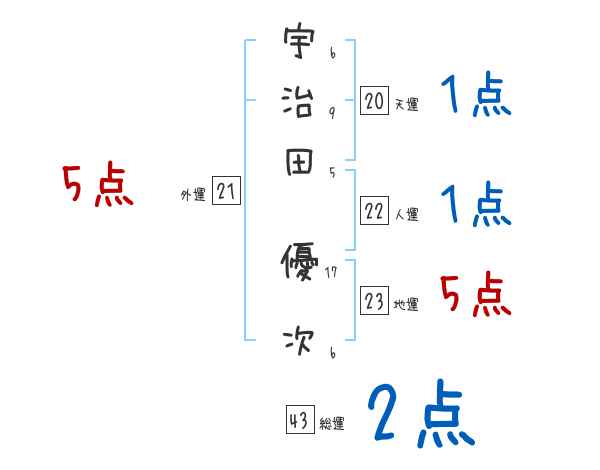 宇治田優次さんの画数の鑑定結果