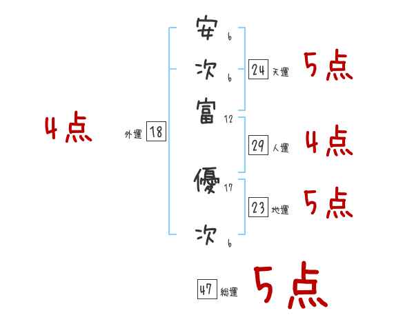 安次富優次さんの画数の鑑定結果