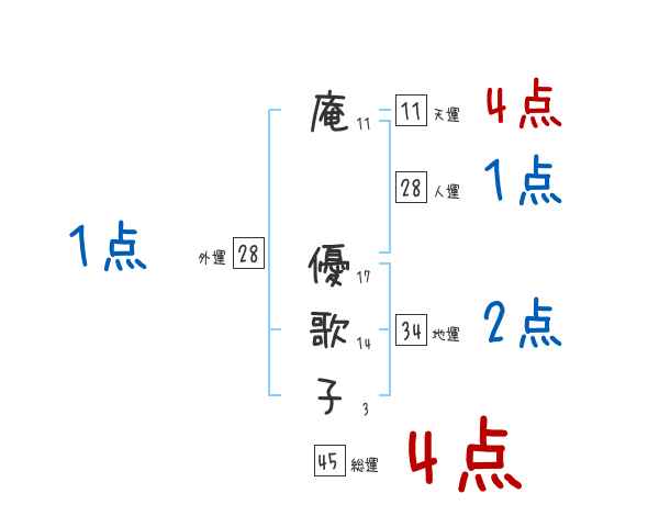 庵優歌子さんの画数の鑑定結果