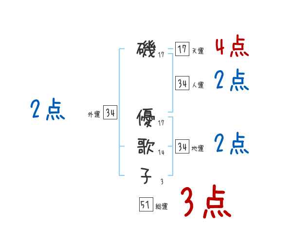 磯優歌子さんの画数の鑑定結果