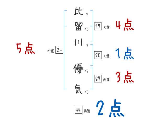比留川優気さんの画数の鑑定結果