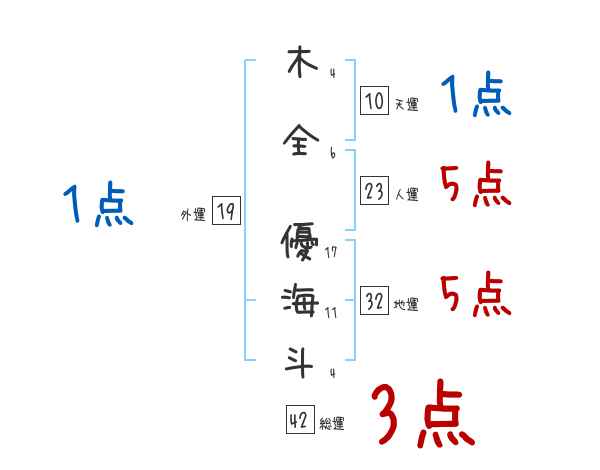 木全優海斗さんの画数の鑑定結果