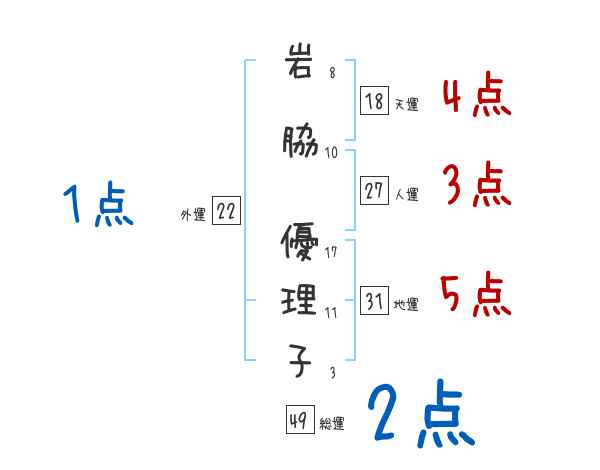 岩脇優理子さんの画数の鑑定結果