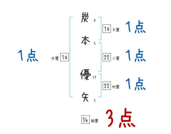 炭本優矢さんの画数の鑑定結果