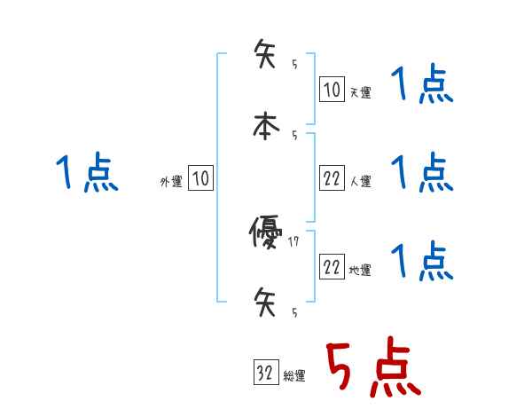 総運![]() | 矢本優矢さんの総運は32画の5つ星!柔軟性があり成功する。チャンスが多く金運が良い。 あなたの人生を表す1番重要な運勢です。生涯を通じて影響する総合運となり、主に50歳以降の晩年期に影響を及ぼします。 |