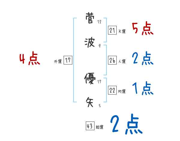 菅波優矢さんの画数の鑑定結果