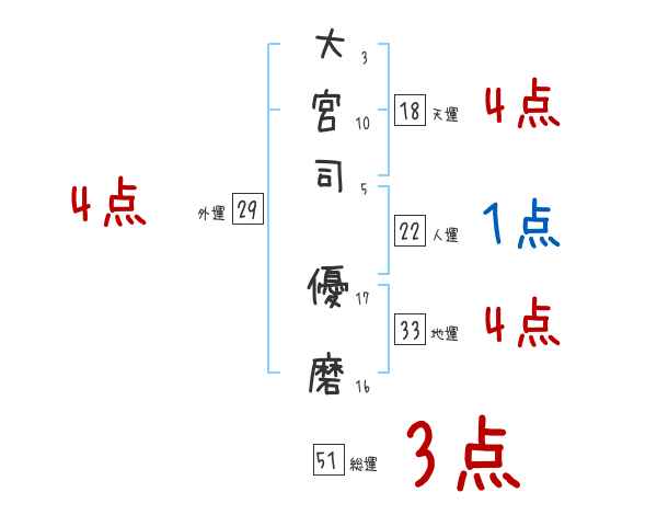 大宮司優磨さんの画数の鑑定結果