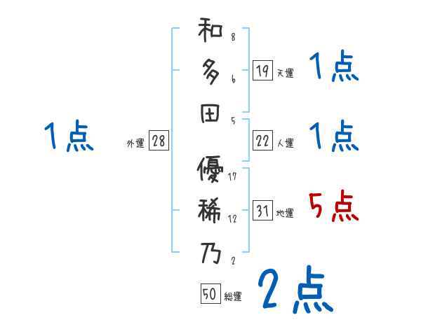 和多田優稀乃さんの画数の鑑定結果