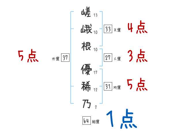 嵯峨根優稀乃さんの画数の鑑定結果