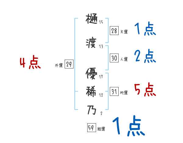 樋渡優稀乃さんの画数の鑑定結果