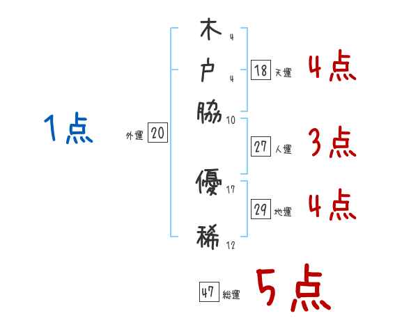 木戸脇優稀さんの画数の鑑定結果