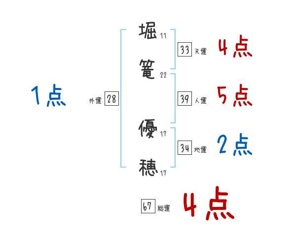 堀篭優穂さんの画数の鑑定結果