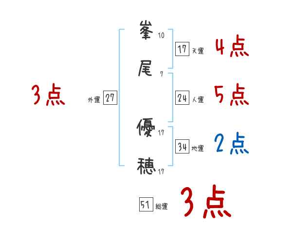 峯尾優穂さんの画数の鑑定結果