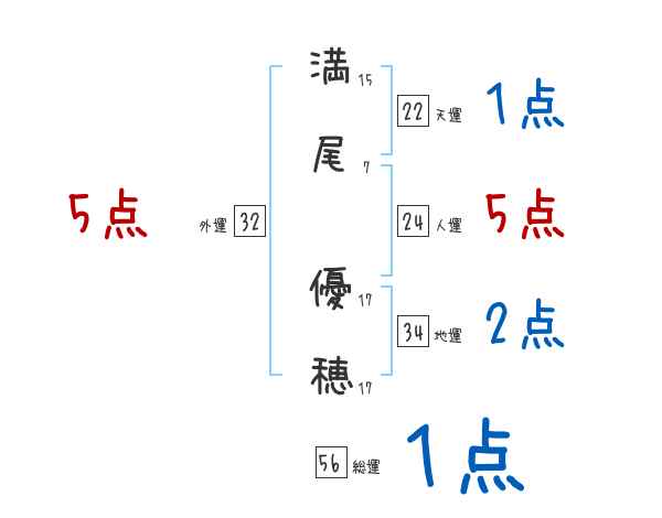 満尾優穂さんの画数の鑑定結果