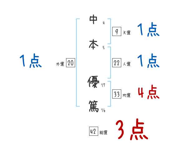中本優篤さんの画数の鑑定結果
