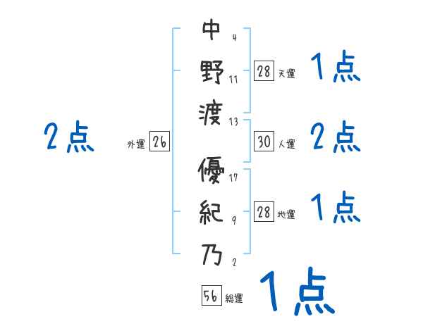中野渡優紀乃さんの画数の鑑定結果
