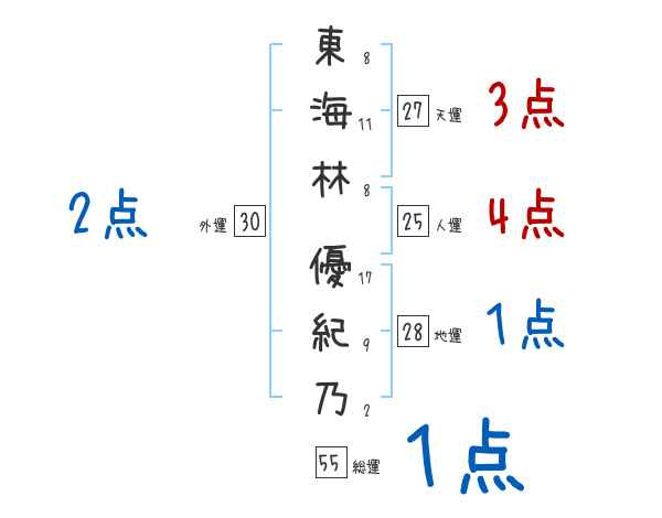 天運![]() | 東海林優紀乃さんの天運は27画の3つ星!頭脳明晰だが強情で摩擦が多い傾向。孤立に注意。 家系が持つ宿命的な運勢を表します。祖先から受け継いだ苗字ですので自分の力が及びません。家柄を象徴します。 |