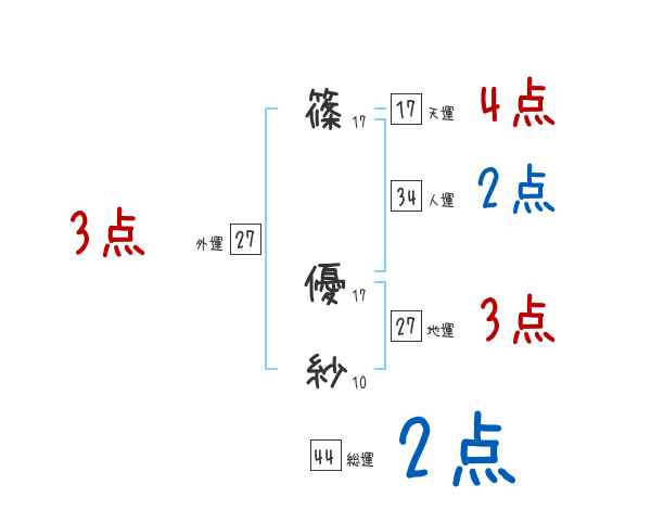 篠優紗さんの画数の鑑定結果
