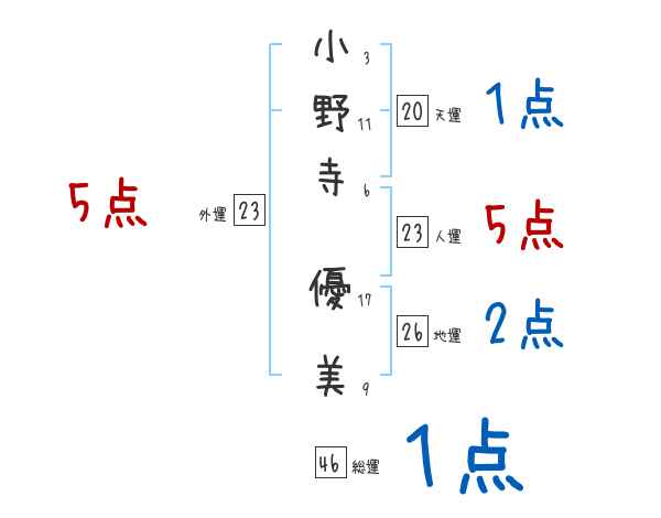 小野寺優美さんの画数の鑑定結果