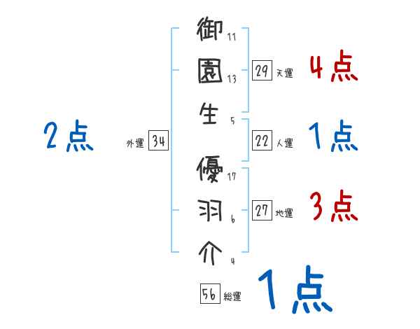 御園生優羽介さんの画数の鑑定結果
