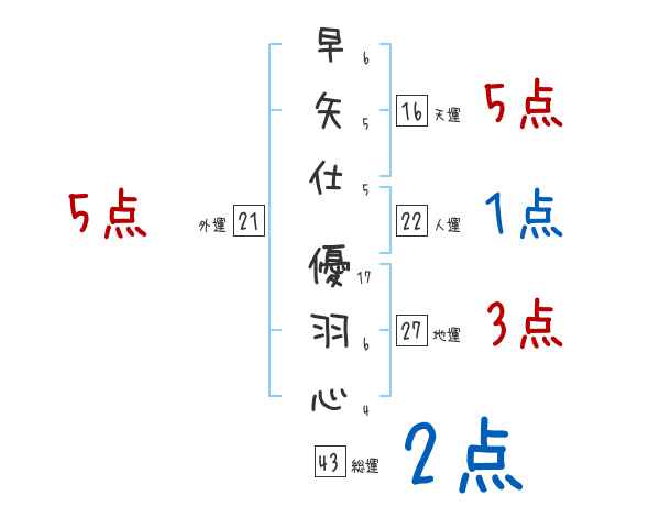 早矢仕優羽心さんの画数の鑑定結果